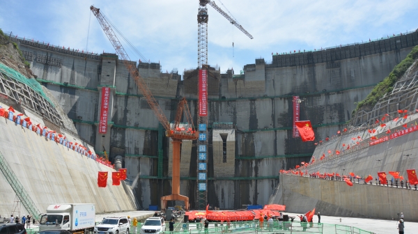 10-16金塘沖水庫八孔弧門成功吊裝